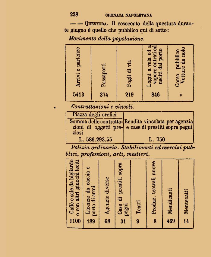 Arrivi e partenze Passaporti Fogli di via Legni a vela ed a vapore entrati ed usciti dal porto Corso pubblico Vetture da nolo