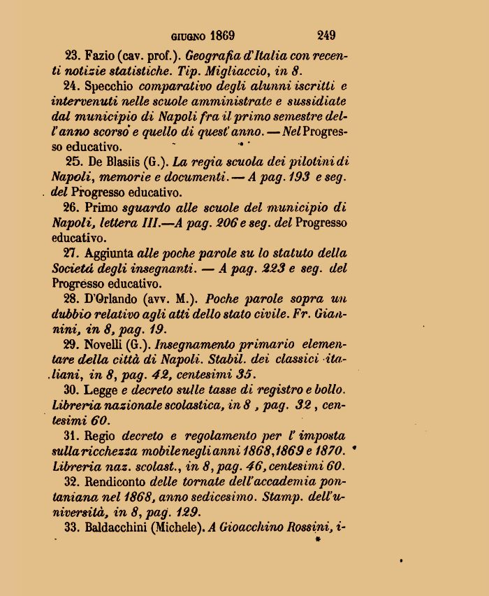 32. Rendiconto delle tornate dell'accadem ia po n-taniano, nel 1868, anno sedicesimo. Stamp. dell'università, in 8, pag. 129.