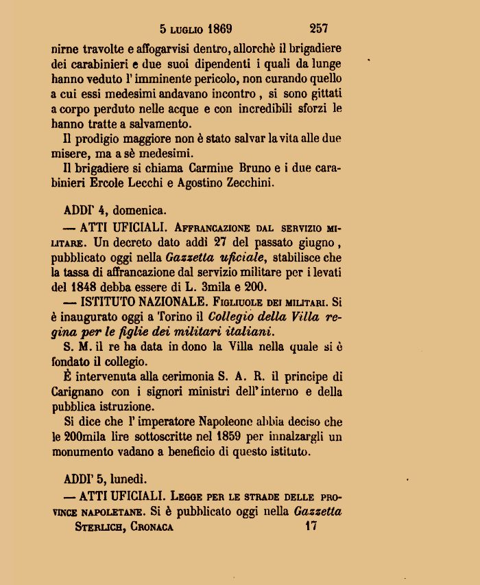 — ATTI UFICIALI. Affrancazione dal servizio militare. Un decreto dato addì 27 del passato giugno, pubblicato oggi nella Gazzetta uficiale, stabilisce che la tassa di affrancazione dal servizio militare per i levati del 1848 debba essere di L. 3mila e 200.