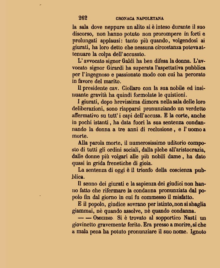 E il popolo, giudice sovrano per istinto, non si sbaglia giammai, nè quando assolve, nè quando condanna.