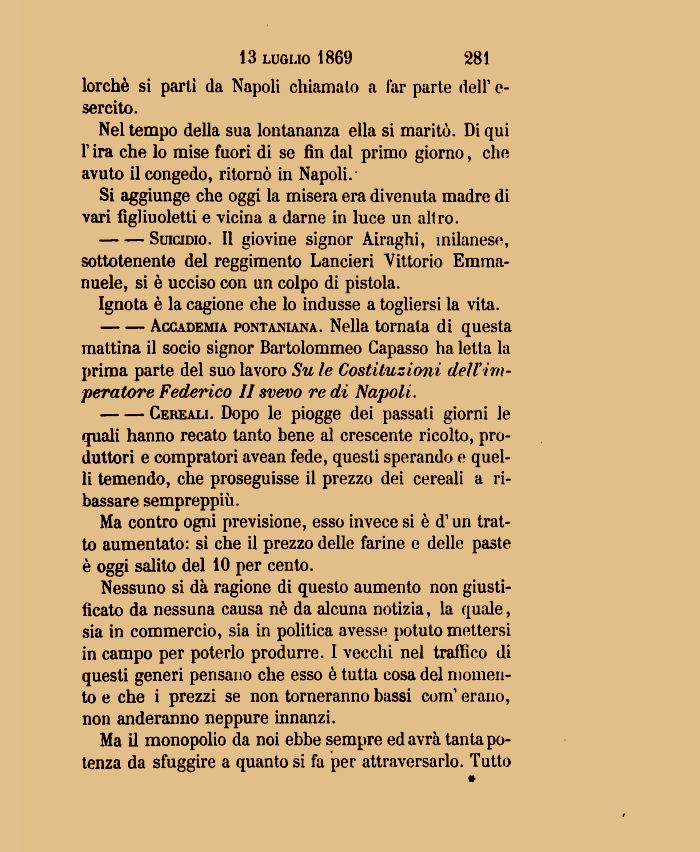 mattina il socio signor Bartolommeo Capasso ha letta la prima parte del suo lavoro Su le Costituzioni dell'imperatore Federico II sveno re di Napoli.