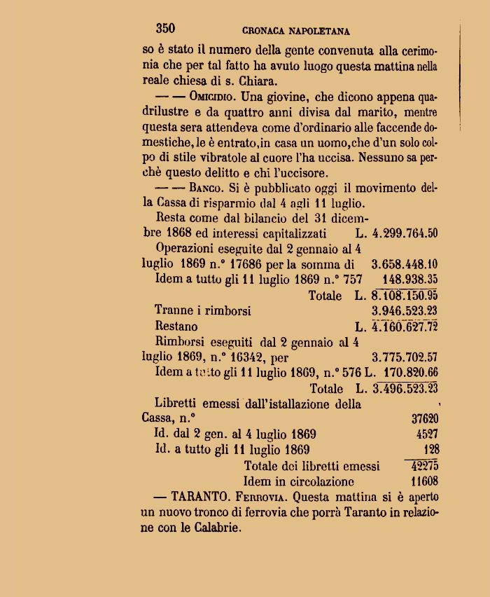 Idem a tu Ito gli 11 luglio 1869, n.° 576 L. 170.820.66