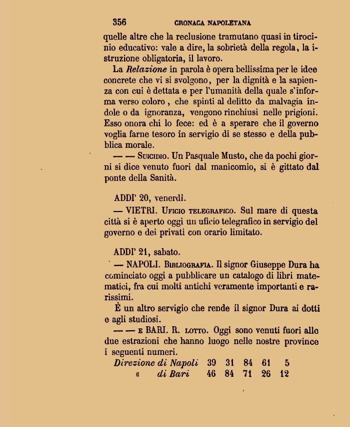--e BARI. R. lotto. Oggi sono venuti fuori alle