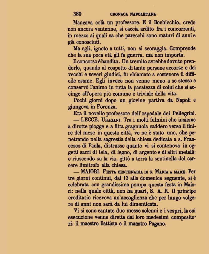 Mancava colà un professore. E il Bochicchio, credo non ancora ventenne, sì caccia ardito fra i concorrenti, in mezzo ai quali sa che parecchi sono maturi di anni e già conosciuti.