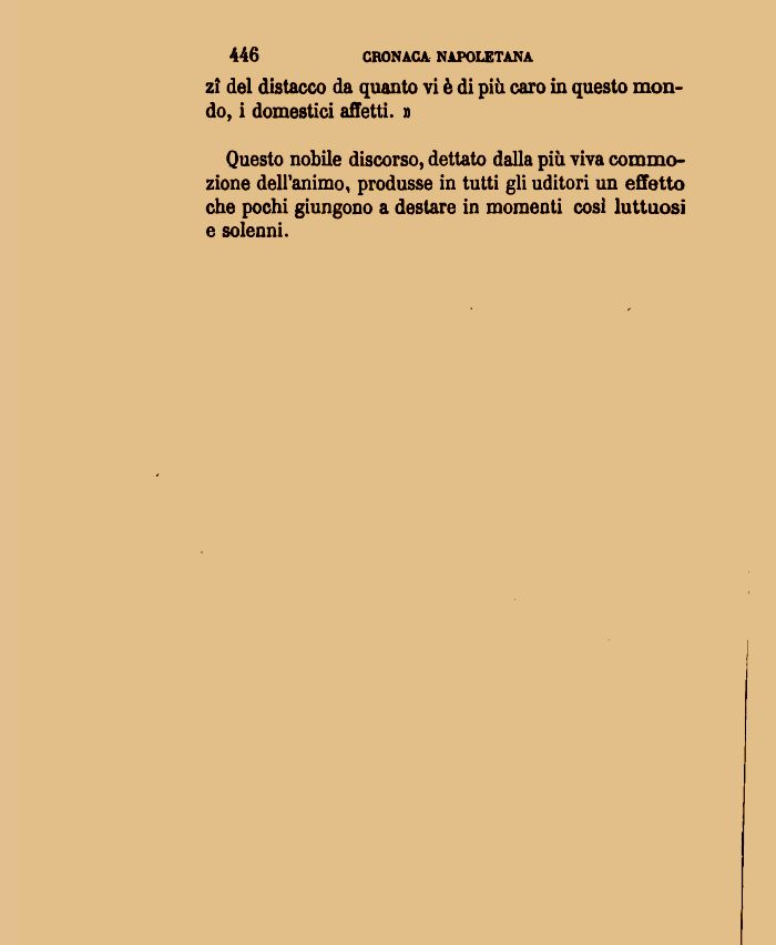 Questo nobile discorso, dettato dalla più viva commozione dell'animo, produsse in tutti gli uditori un effetto che pochi giungono a destare in momenti così luttuosi e solenni.