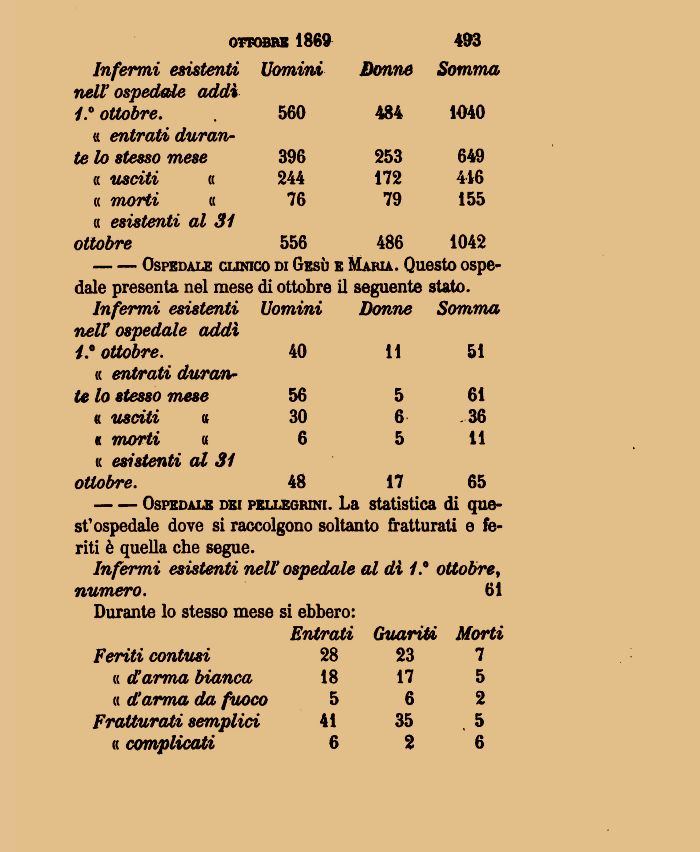 --Ospedale dei pellegrini. La statistica di quest'ospedale dove si raccolgono soltanto fratturati e feriti è quella che segue.