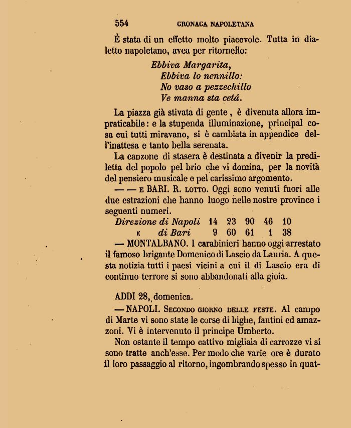 — MONTALBANO. I carabinieri hanno oggi arrestato il famoso brigante Domenico di Lascio da Lauria. A questa notizia tutti i paesi vicini a cui il di Lascio era di continuo terrore si sono abbandonati alla gioia.