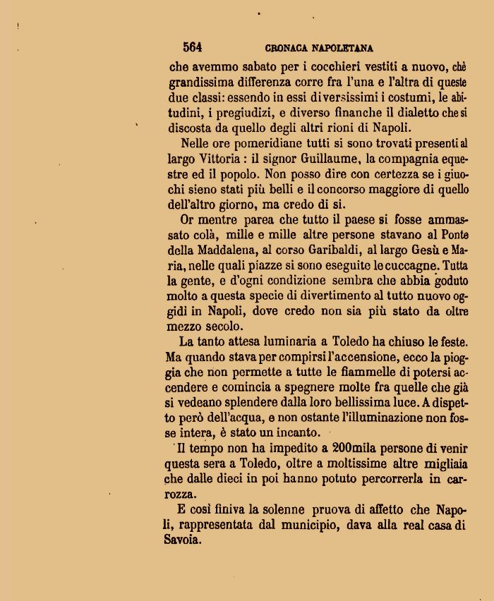 E così finiva la solenne pruova di affetto che Napoli, rappresentata dal municipio, dava alla real casa di Savoia.