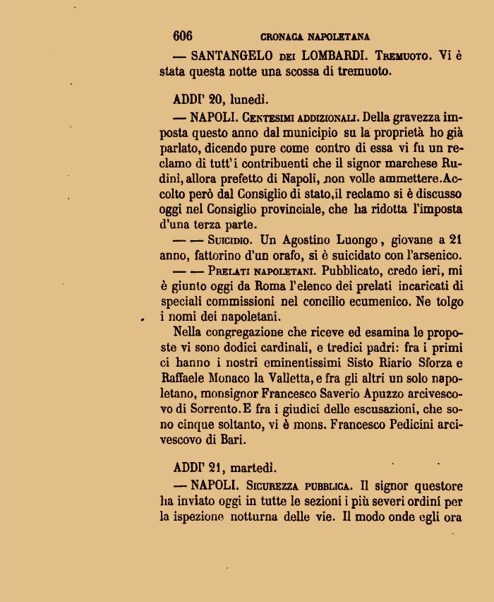è giunto oggi da Roma l'elenco dei prelati incaricati di speciali commissioni nel concilio ecumenico. Ne tolgo i nomi dei napoletani.