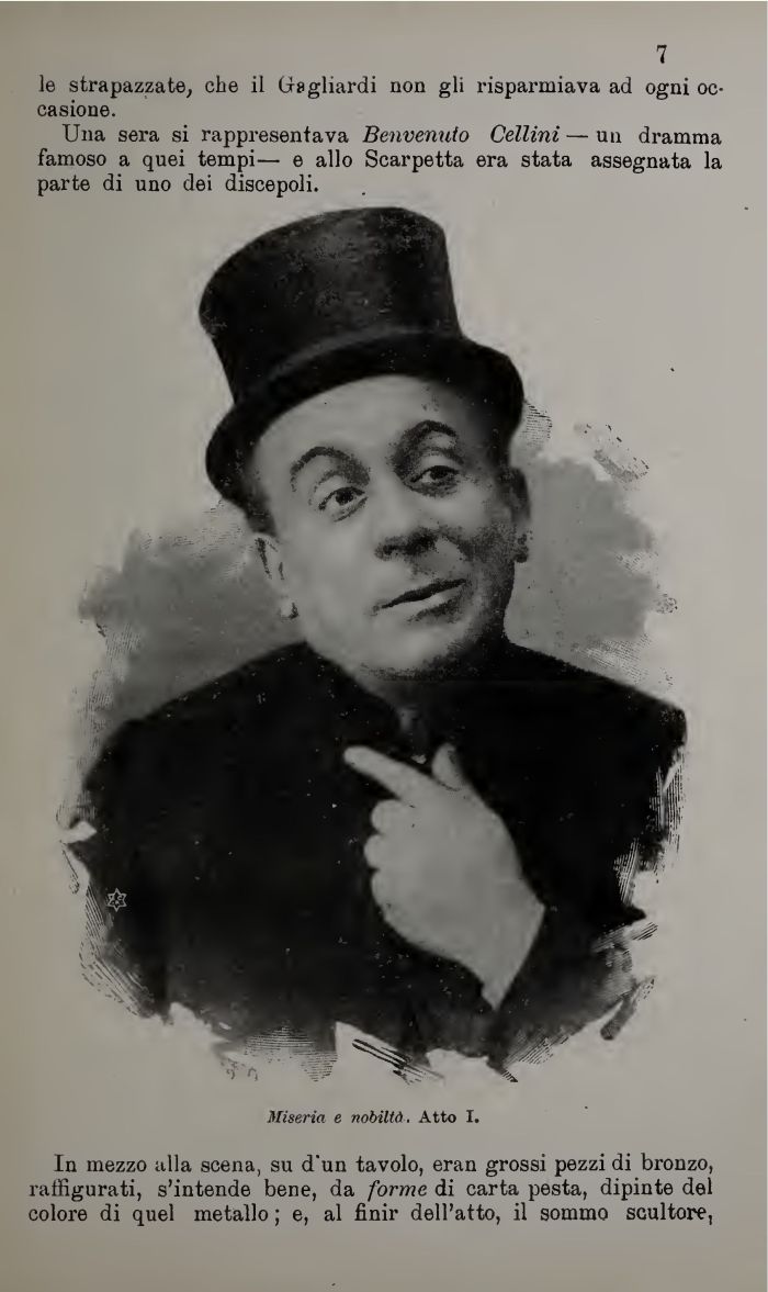 Una sera si rappresentava Benvenuto Celimi — un dramma famoso a quei tempi— e allo Scarpetta era stata assegnata la parte di uno dei discepoli.