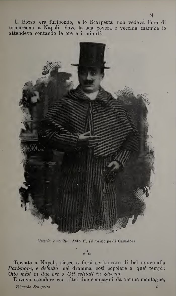 Il Bozzo ora furibondo, e lo Scarpetta non vedeva l'ora di tornarsene a Napoli, dove la sua povera e vecchia mammà lo attendeva contando le ore e i minuti.