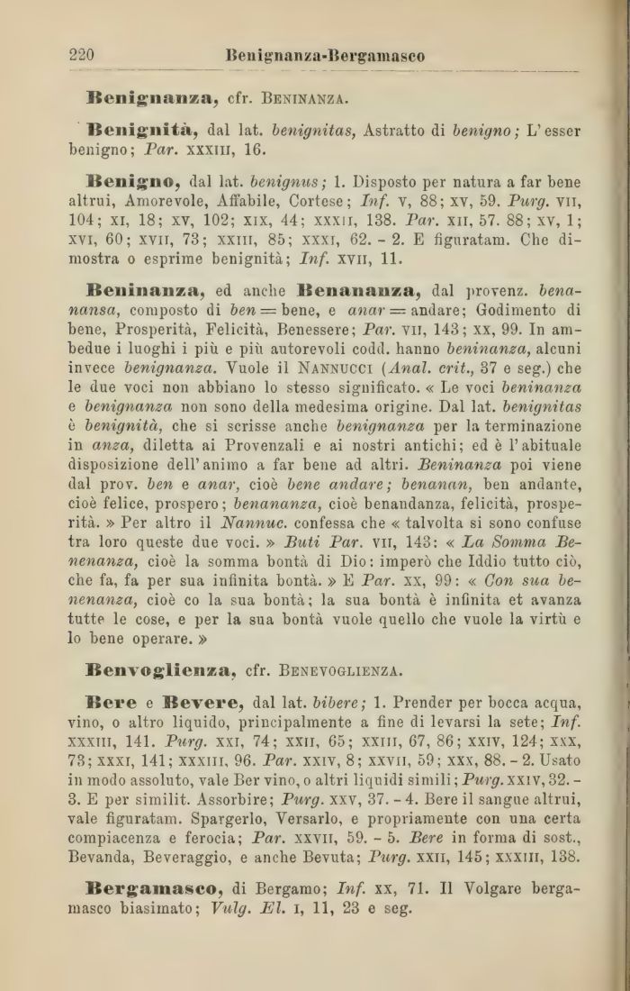 Bergamasco, di Bergamo; Inf. xx, 71. Il Volgare bergamasco biasimato; Vulg. El. i, 11, 23 e seg.