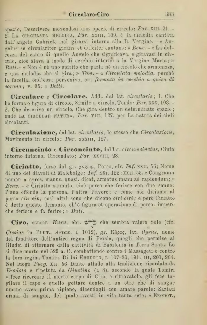 Circnlazioiie, dal lat. circuìatio, lo stesso che Circolazione, Movimento in circolo; Par. xxxiii, 127.