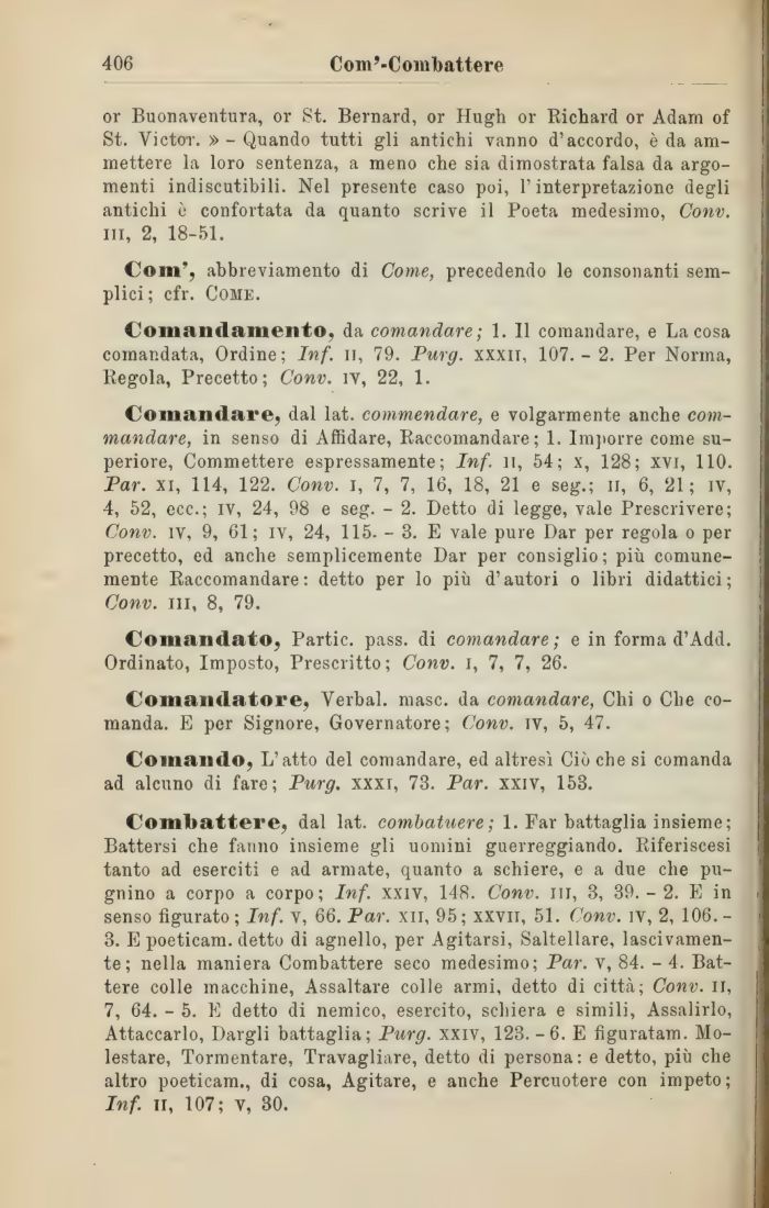 Comando, L'atto del comandare, ed altresì Ciò che si comanda ad alcuno di fare; Purg. xxxi, 73. Par. xxiv, 153.