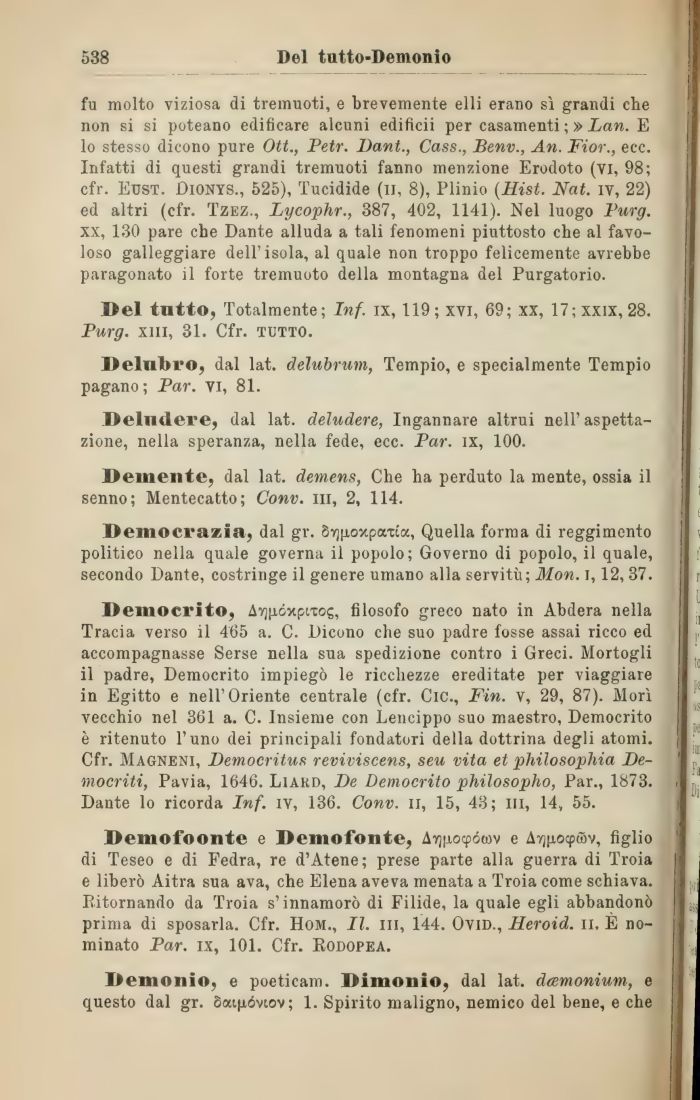 10 stesso dicono pure Ott., Petr. Dant., Cass., Benv., An. Fior., ecc. Infatti di questi grandi tremuoti fanno menzione Erodoto (vi, 98; cfr. Eust. Dionys., 525), Tucidide (il, 8), Plinio (.Hist. Nat. iv, 22) ed altri (cfr. Tzez., Lycophr., 387, 402, 1141). Nel luogo Purg. xx, 130 pare che Dante alluda a tali fenomeni piuttosto che al favoloso galleggiare dell'isola, al quale non troppo felicemente avrebbe paragonato il forte tremuoto della montagna del Purgatorio.