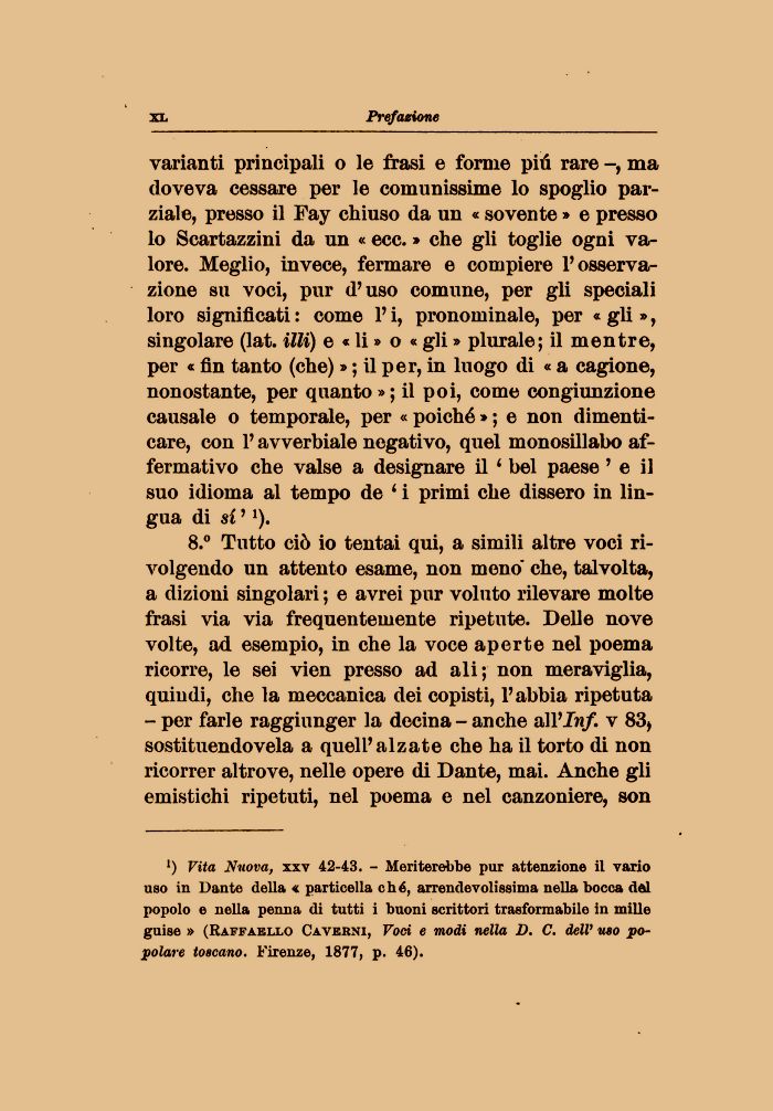 ') Vita Nuova, xxv 42-43. - Meriterebbe pur attenzione il vario uso in Dante della « particella ché, arrendevolissima nella bocca dal popolo e nella penna di tutti i buoni scrittori trasformabile in mille guise » (Raffaello Caverni, Voci e modi nella D. C. dell' uso popolare toscano. Firenze, 1877, p. 46).