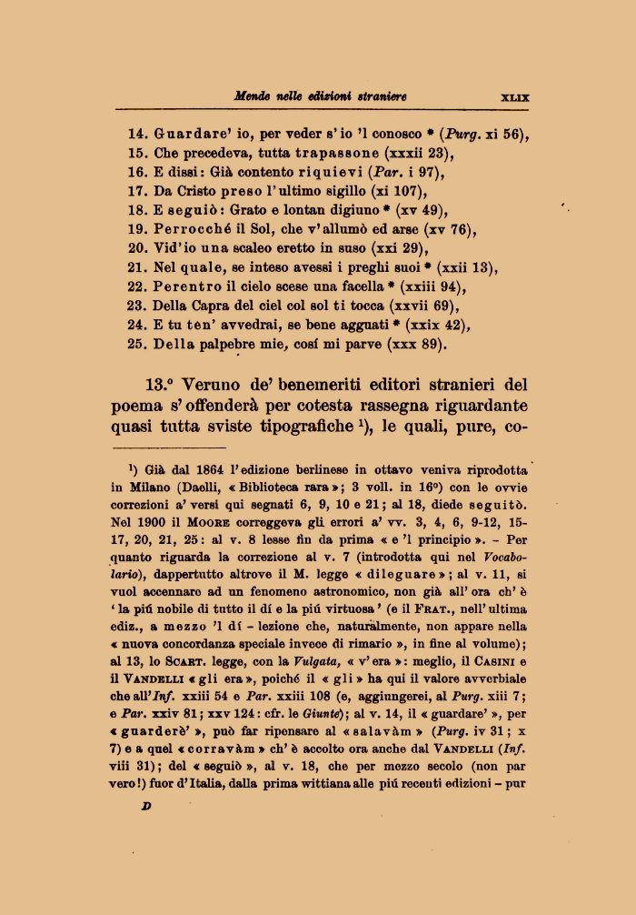 13.° Veruno de' benemeriti editori stranieri del poema s'offenderà per cotesta rassegna riguardante quasi tutta sviste tipografiche *), le quali, pure, co-