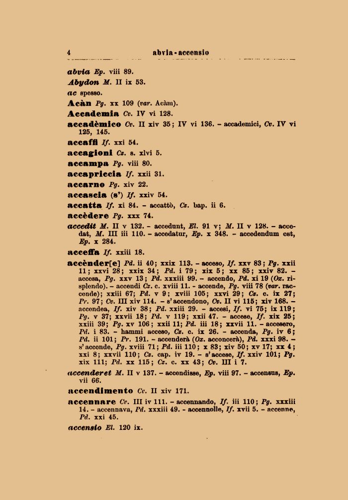 Acàn Pg. xx 109 (var. Acàm). Accademia Cv. IV vi 128.