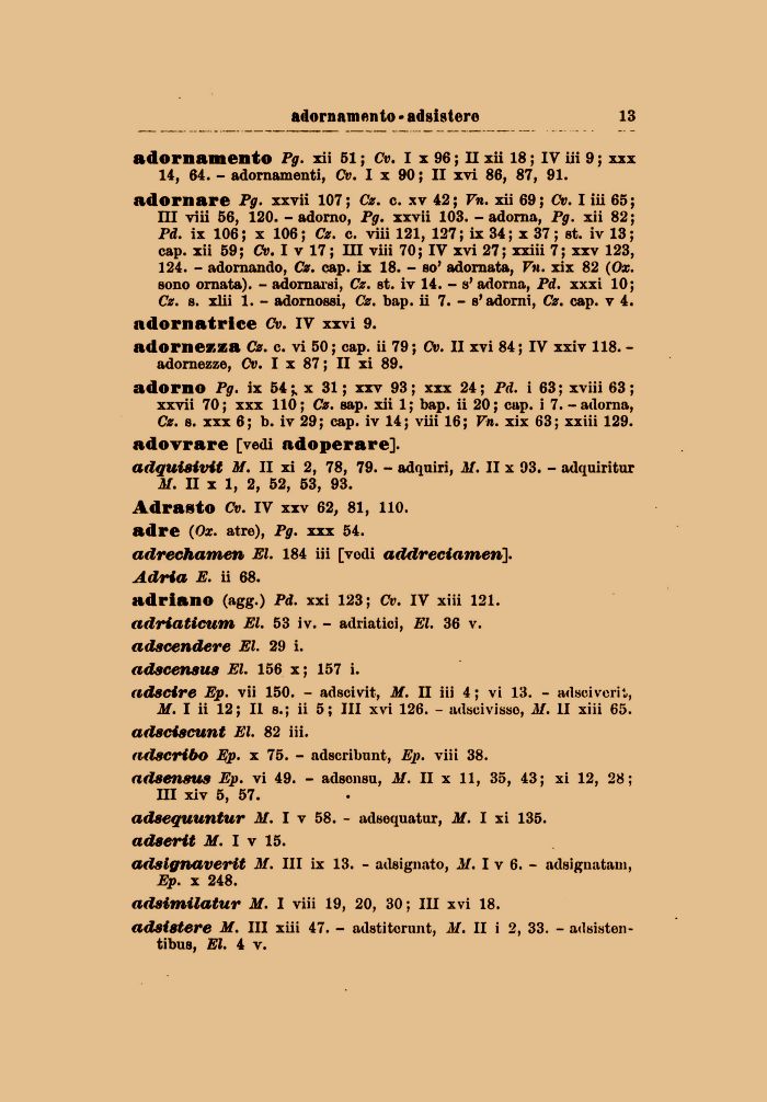 adriano (agg.) Pd. xxi 123; Cv. IV xiii 121. adriaticum El. 53 iv. - adriatici, El. 36 v. adscendere El. 29 i. adscensua El. 156 x ; 157 i.