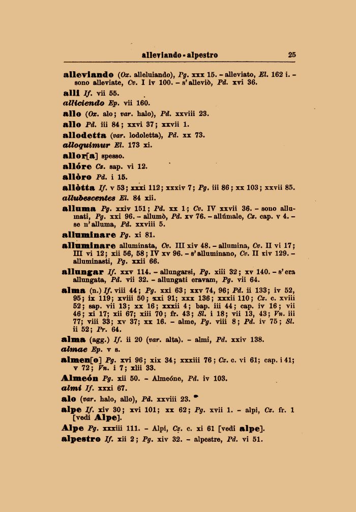 allòtta If. v 53; xxxi 112; xxxiv 7; Pg. iii 86 : xx 103; xxvii 85. allube8centes El. 84 xii.