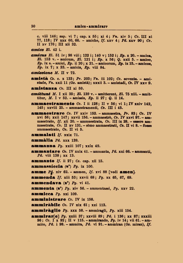 amicua El. 51 iv; 98 viii; 122 i; 140 v; 152 i; Ep. x 20. - amica, El. 153 v. - amicum, El. 121 i; Ep. x 56; Q. xxii 5. - amico, Ep. ix s. - amici, Ep. ii 20 ; x 21. - amicorum, Ep. ix 15. - amicos, Ep. ix 7; x 33. - amicis, Ep. viii 84.