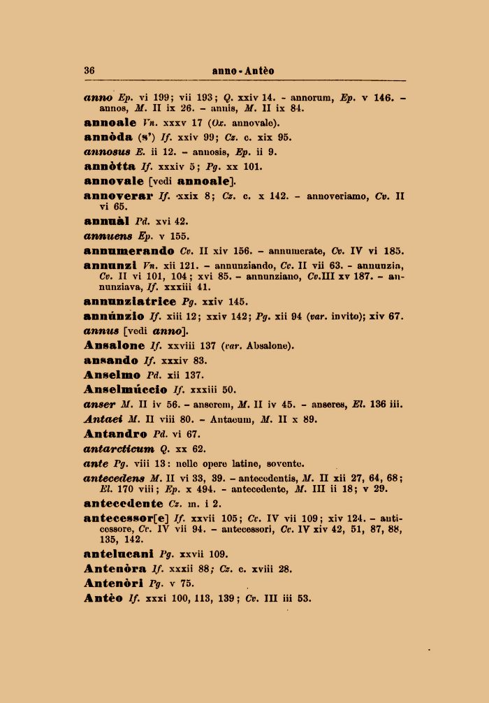 antecessore] If. xxvii 105; Cv. IV vii 109; xiv 124. - auti-cossore, Cv. IV vii 94. - antecessori, Cv. IV xiv 42, 51, 87, 88, 135, 142.