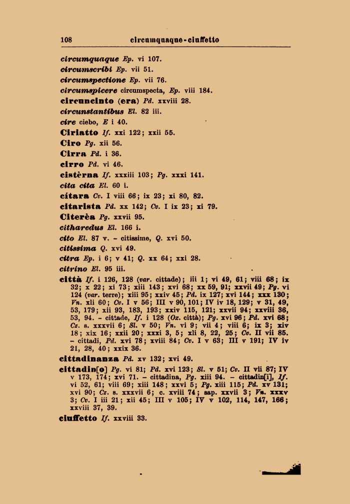 cistèrna If. xxxiii 103; Pg. xxxi 141. cita cita El. 60 i.