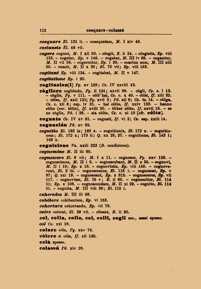 cognizione Vn. xxiii 223 (B. condizione). cognomine M. II iii 80.