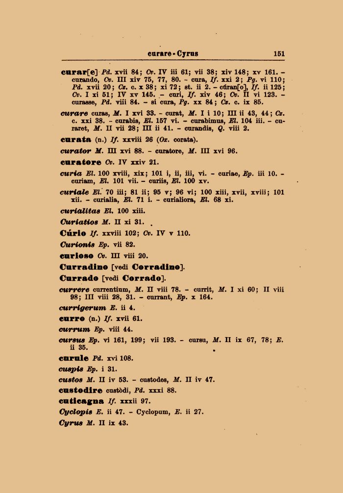cu sto 8 M. II iv 53. - custodes, M. II iv 47. custodire custòdi, Pd. xxxi 88. cuticagna lf. xxxii 97. Cyclopis E. ii 47. - Cyclopum, E. ii 27. Cyrus M. II ix 43.