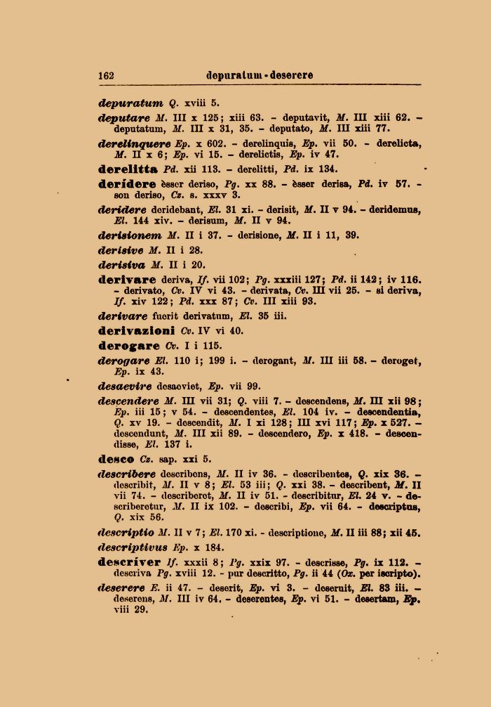 deserere E. ii 47. - deserit, Ep. vi 3. - doseruit, El. 83 iii. -deserens, 31. Ili iv 64, - deserentes, Ep. vi 51. - desertam, Ep.