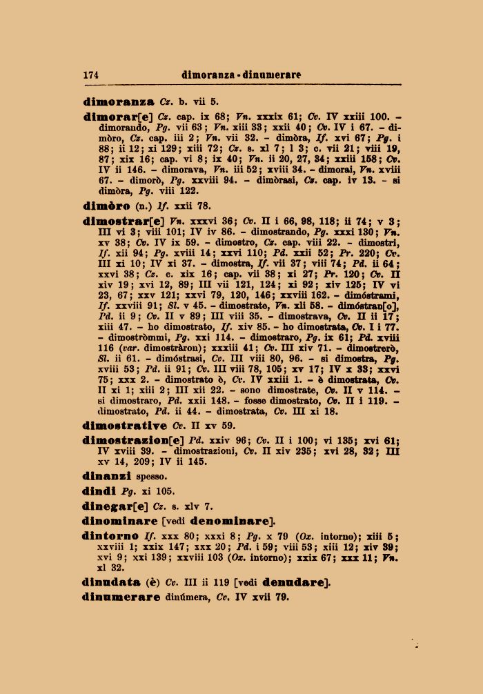 dinanzi spesso, dindi Pg. xi 105. dinegar[e] Cz. s. xiv 7. dinominare [vedi denominare].