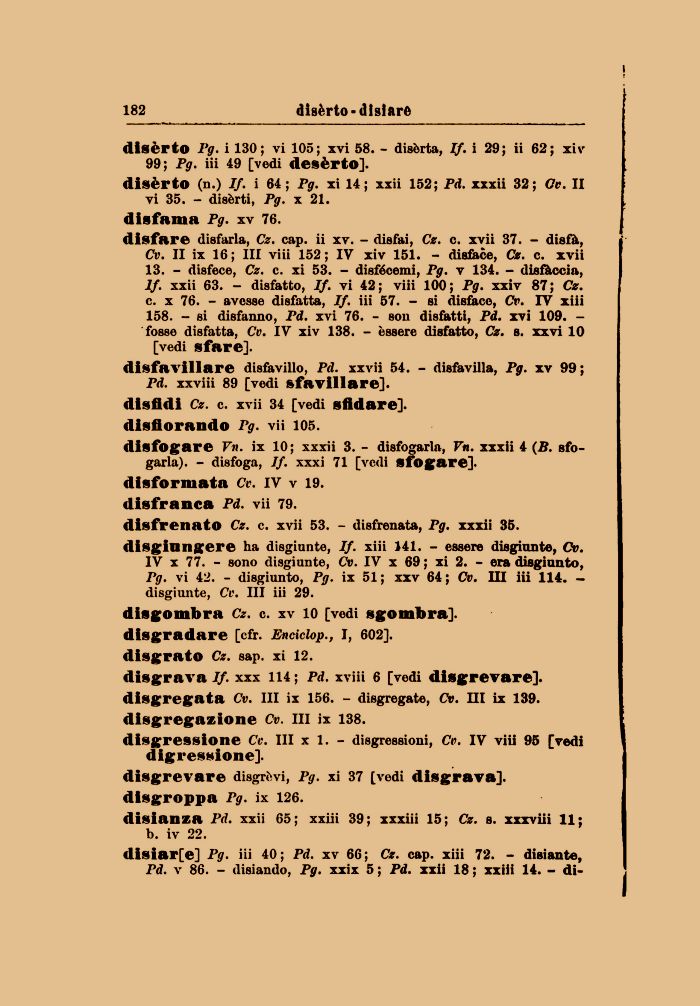 Pd. xxviii 89 [vedi sfavillare], disfidi Cz. C. xvii 34 [vedi sfidare], disfiorando Pg. vii 105.