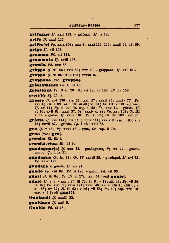 grifagno If. xxii 139. - grifagni, If. iv 123. grifo If. xxxi 126.