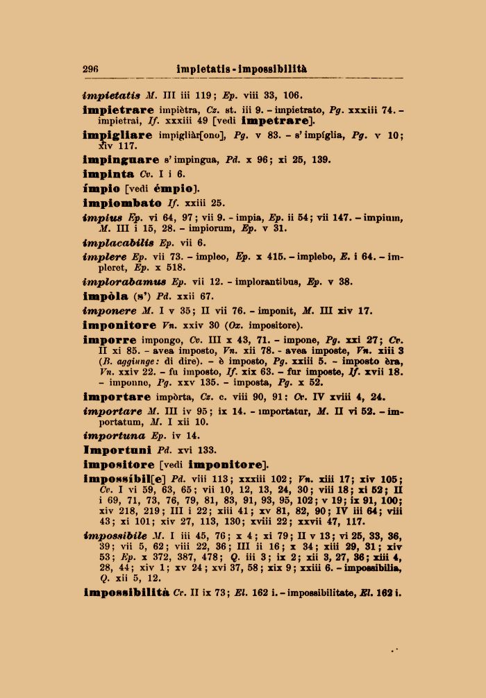 implorabamus Ep. vii 12. - imploranti bus, Ep. v 38. impòla (»') Pd. xxii 67.