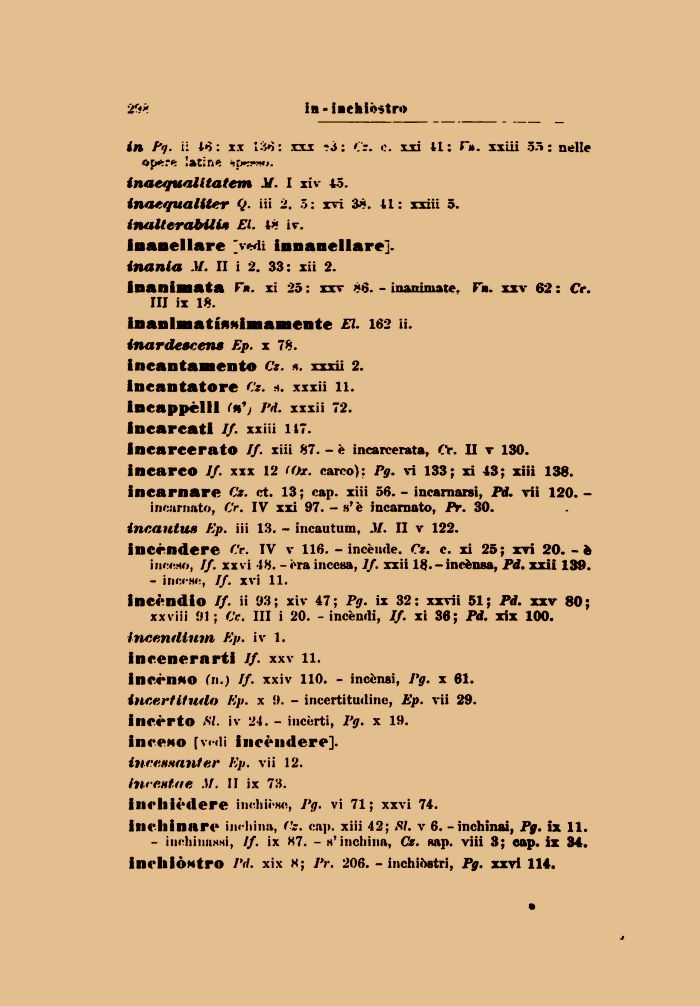 inardescen» Ep. x 78. incantamento Cz. s. xxxii 2. incantatore Cz. .s. xxxii il. incappelli (n'j Pd. xxxii 72. incarcatl //. xxiii li7.