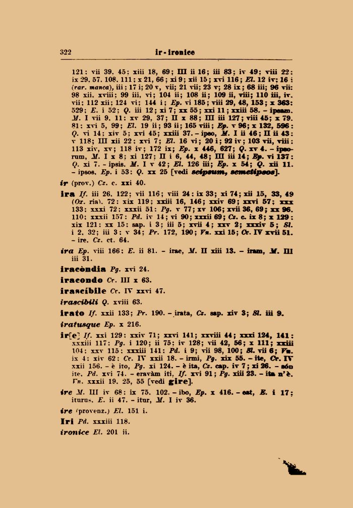 ira Ep. viii 166: E. ii 81. - irae, SI. Et xiii 13. - inni, M. Ili