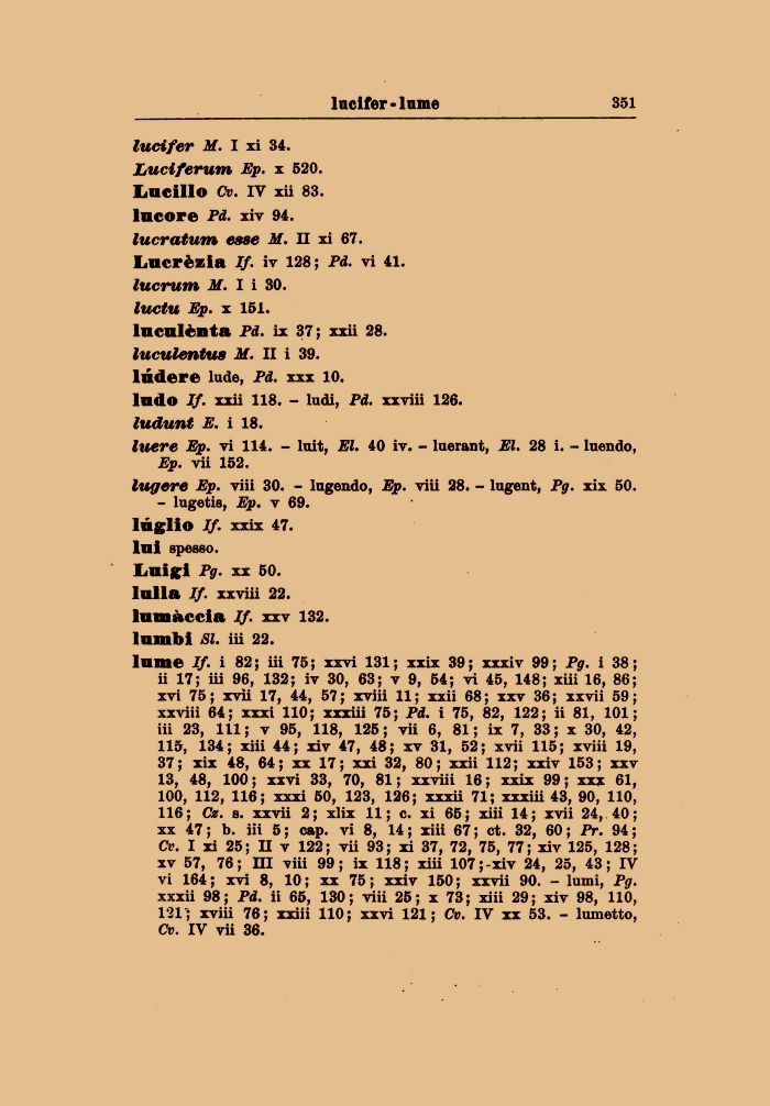 lume If. i 82 ; iii 75 ; xxvi 131 ; xxix 39 ; xxxiv 99 ; Pg. i 38 ;
