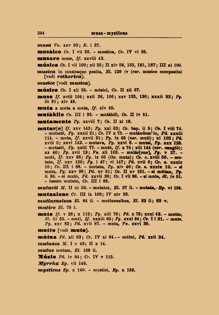 mnsàico Cv. I vii 92. - musàica, Cv. IV vi 35.