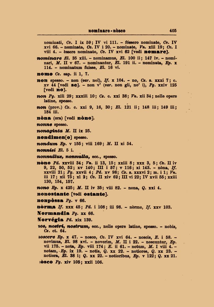 loscere Ep. x 47. - nosco, Cv. IV xvi 64. - noscis, E. i 58. -novimus, El. 98 xvi. - novenni, M. II i 22. - noscuntur, Ep. vii 175. - nota, Ep. viii 174 ; E. ii 61. - notnm, M. I viii 4. -notam, Ep. ix 19. - notis, Q. xx 22. - notiores, Q. xx 23. -notiora, El. 38 i; Q. xx 22. - notioribus, Ep. v 122; Q. xx 21. lósco Pg. xiv 105; xxii 106.