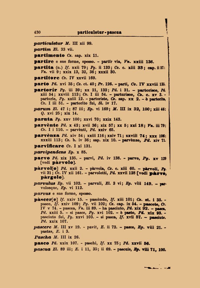 pasco Pd. xxix 107. - paschi, If. xx 75 ; Pd. xxvii 56. pascua El. 89 iii; E. i 11, 35; ii 69. - pascuis, Ep. viii 71, 100.