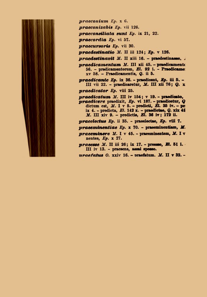 praedlcamentum il. Ili xii 45. - piaedicamentc 56. - predicamelitorum, El. 92 i. - Praedi carne xv 58. - Praedicamentis, Q. ii 5.