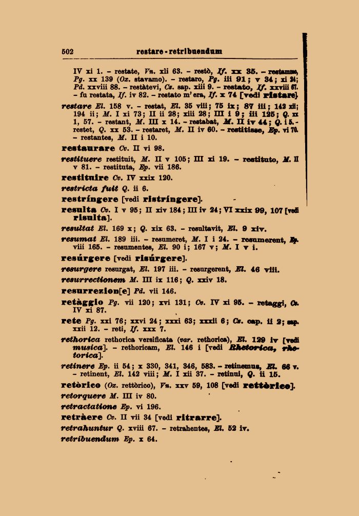 restituire Cv. IV xxix 120. restricta fuit Q. ii 6. restringere [vedi ristringere].