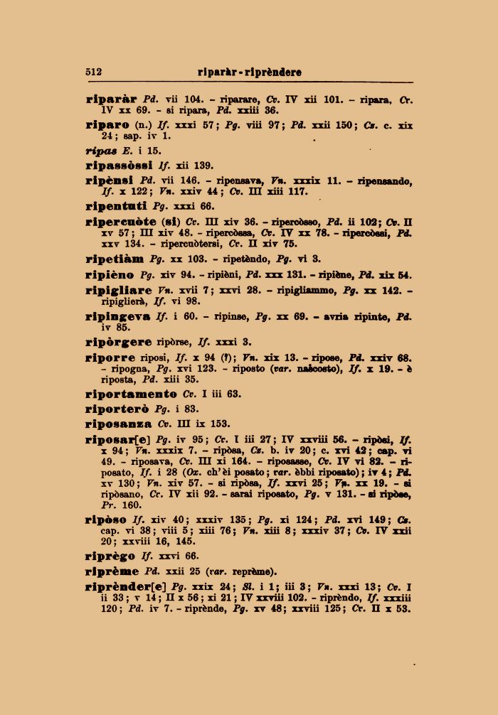 ripingeva If. i 60. - ripinse, Pg. xx 69. - avria ripinte, Pd.