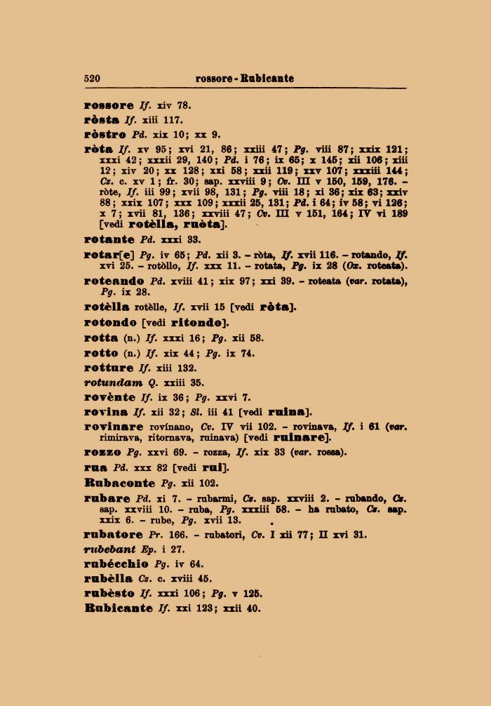 rossore If. xiv 78. ròsta If. xiii 117. ròstro Pd. xix 10; xx 9.