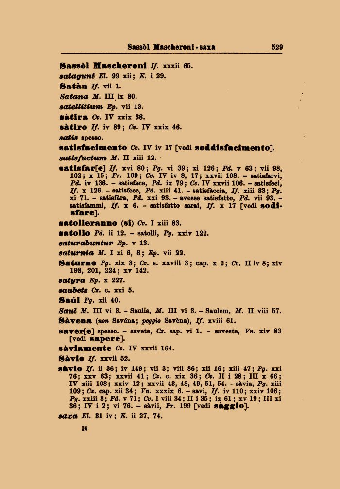 satolleranno (si) Cv. I xiii 83. satollo Pd. ii 12. - satolli, Pg. xxiv 122. saturdbuntur Ep. v 13. saturnia Jf. I xi 6, 8 ; Ep. vii 22.