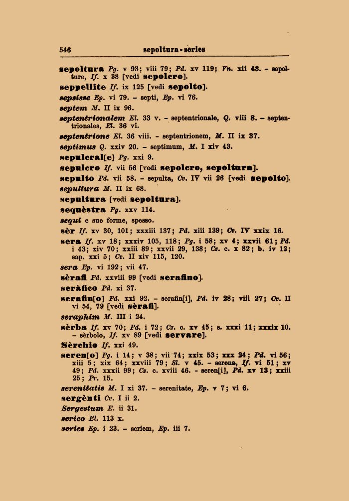 serenitatis M. I xi 37. - serenitate, Ep. v 7 ; vi 6. sergènti Cv. I ii 2. Sergestum E. ii 31. serico El. 113 x.