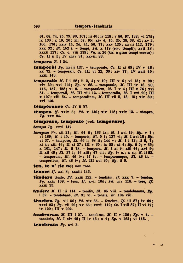 tempora! Pg. xxvii 127. - temporale, Cv. II xi 69 ; IV v 46; xx 72. - temporali, Cv. Ili vi 22, 30; xiv 77; IV xvii 40; xxiii 143.