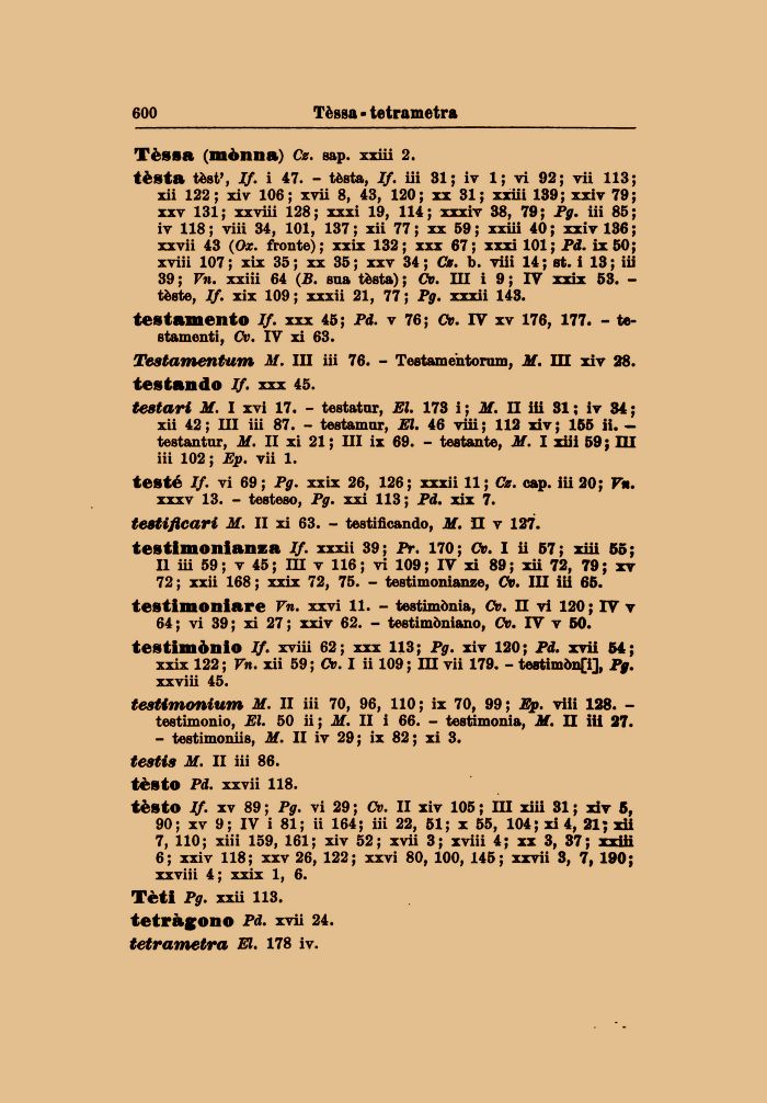 testamento If. xxx 45; Pd. v 76; Cv. IY xv 176, 177. - testamenti, Cv. IV xi 63.