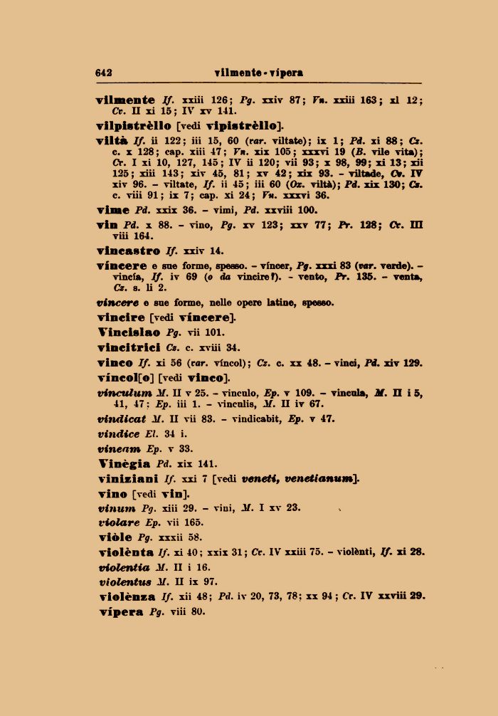 vln Pd. x 88. - vino, Pg. xv 123; xxv 77; Pr. 128; Ct. m viii 164.