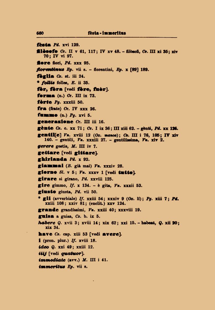 bave Cz. cap. xiii 53 [vedi avere], i (pron. plur.) If. xviii 18. ideo Q. xxi 49; xxiii 12. iiij [vedi quatuor]. immediate (aw.) if. Ili i 41. immeritus Ep. vii s.